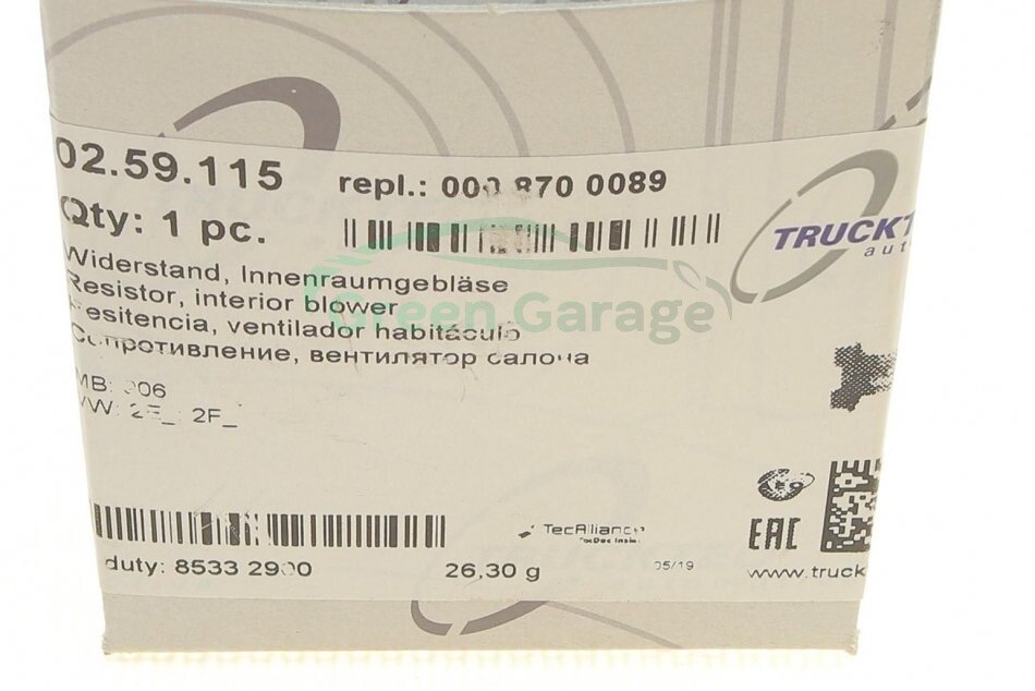 Сопротивление, вентилятор салона TRUCKTEC 02.59.115