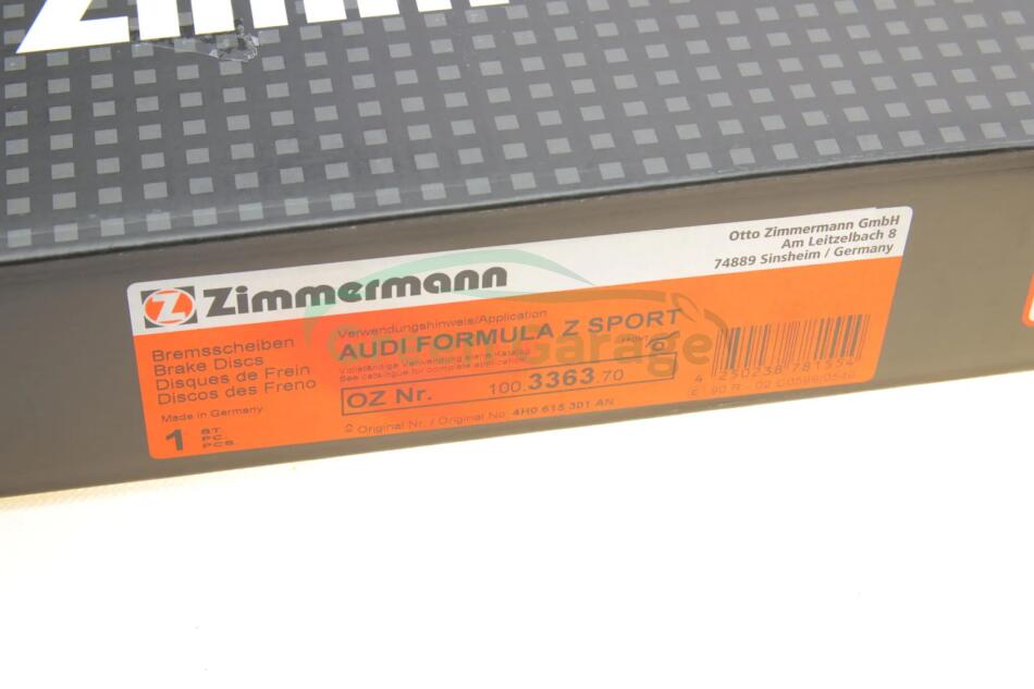 Продукция ZIMMERMANN, включая стандартные, перфорированные диски Sport и составные тормозные диски Formula Z, производится на заводе в городе Зинсхайм, Германия.