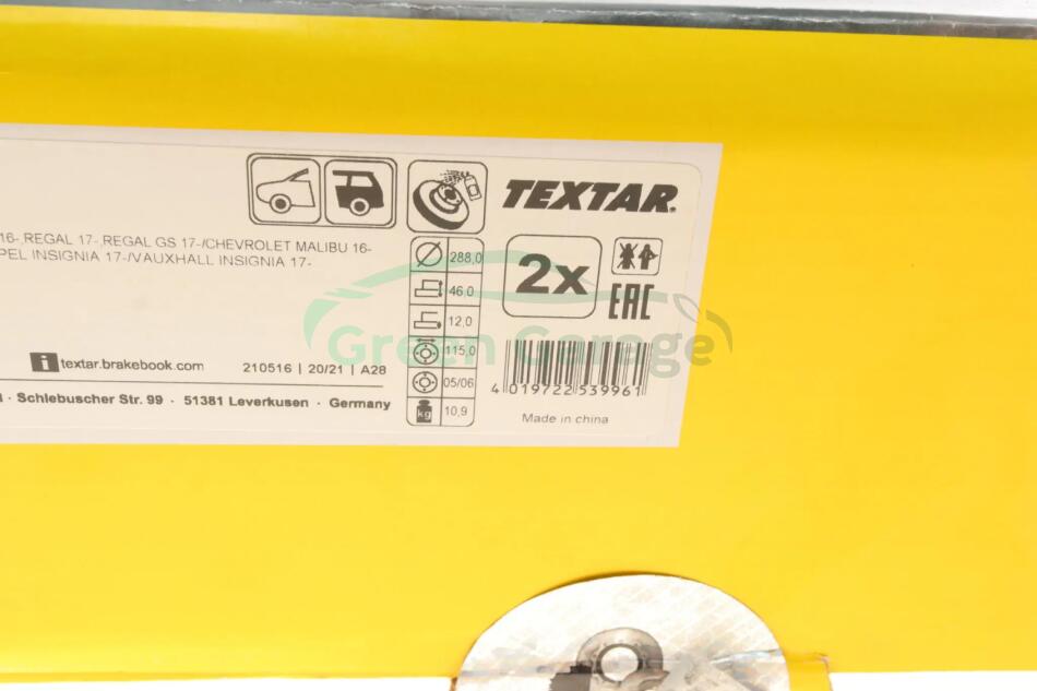 Диск гальмівний задній TEXTAR 92314603