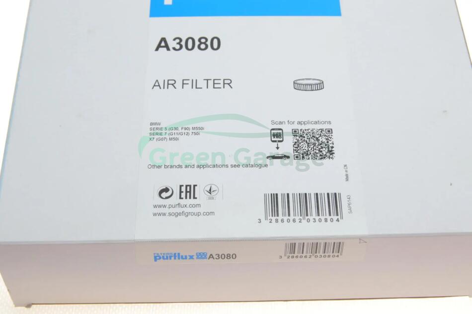 Фильтр воздушный (левый) BMW 5 (F90/G30) 7 (G11/G12) X7 (G07) 4.4/6.6 15- PURFLUX A3080