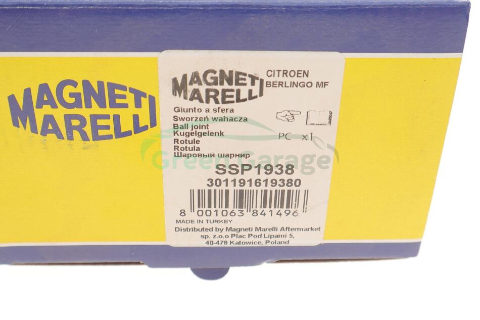 Опора шаровая CITROEN BERLINGO, PEUGEOT PARTNER 96- перед. мост MAGNETI MARELLI 301191619380