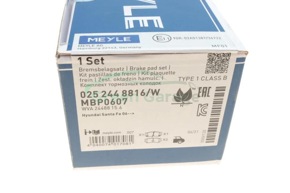 Гальмівні колодки, дискове гальмо (набір) MEYLE 0252448816W