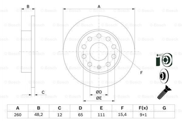 (260mm) Диск гальмівний зад. Skoda Octavia 04-/Caddy 04-/Golf 03-/Jetta 05-/Touran 03- BOSCH 0 986 479 155