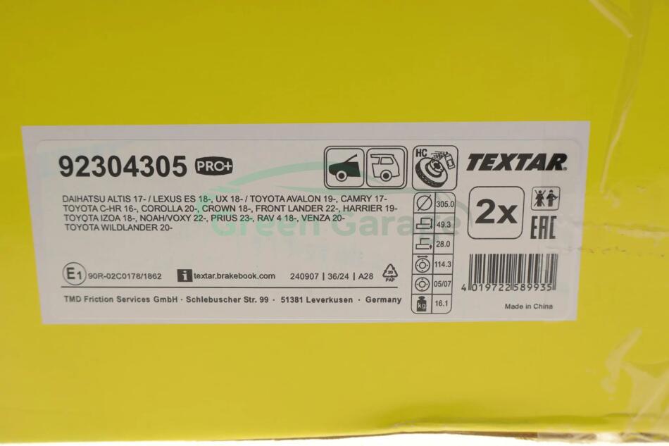 Диск гальмівний TEXTAR 92304305