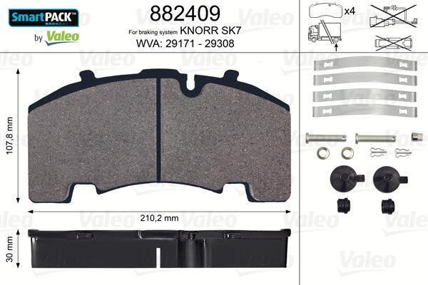 Комплект гальмівних накладок, дискове гальмо VALEO 882409