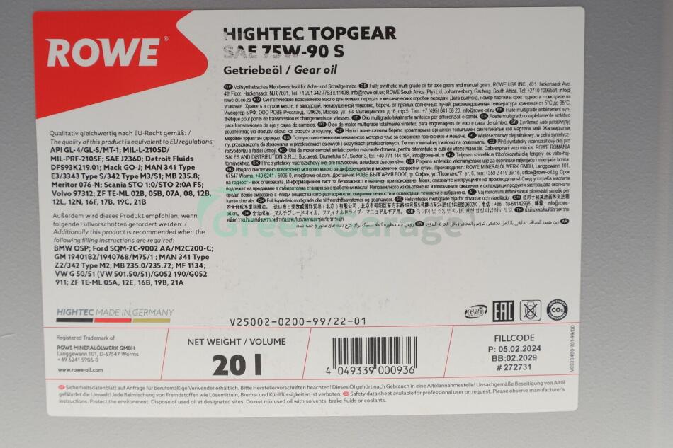 Олива трансмісійна HIGHTEC TOPGEAR SAE 75W-90 S (20 L) ROWE 25002020099