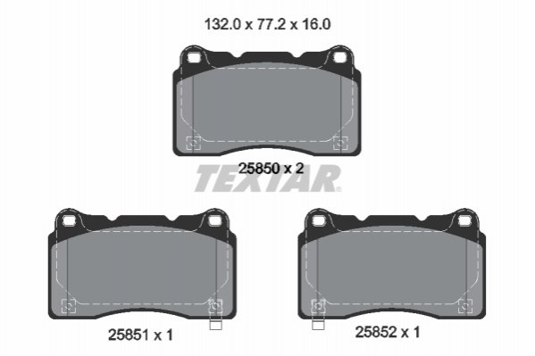 Комплект гальмівних колодок передн, ALFA ROMEO GIULIETTA HONDA CIVIC X, CIVIC XI RENAULT MEGANE III SUBARU IMPREZA TESLA MODEL S, MODEL X, ROADSTER 1.6D-Electric 11.01- TEXTAR 2585001