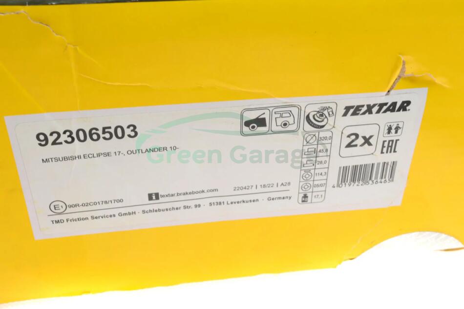 TARCZA HAMULCOWA PRZOD TEXTAR 92306503