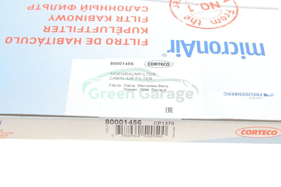 Повітряний фільтр салону CORTECO 8000 1456