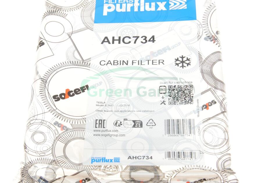 Фільтр салону Tesla Model S 12- (вугільний) 30x157x244 PURFLUX AHC734