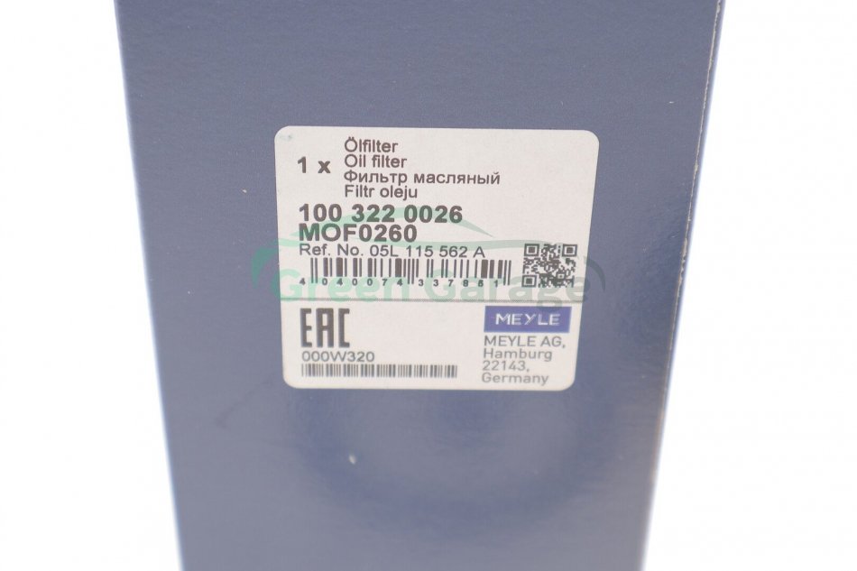 Фільтр масляний MEYLE 100 322 0026