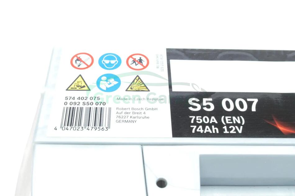 Акумулятор 74Ah-12v (S5007) (278x175x175),R,EN750 BOSCH 0 092 S50 070