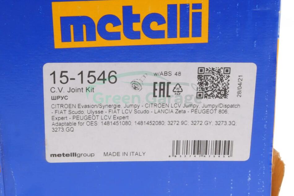 Шрус зовнішній, 2.0HDi 99- (+ABS) METELLI 151546