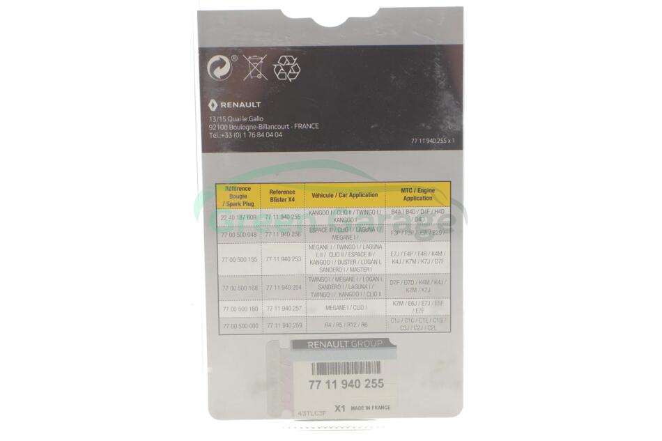 Свічка запалення блістер 4 шт. 224018760R RENAULT 7711940255